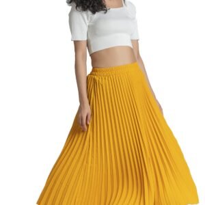 AASK Girl’s Polyester |Women’s Classic Stretchy All Time Trendy Pleated Skirt|Western Skirt |Midi Skirt| Plited Lehenga Wedding Ghaghra Yellow, Medium