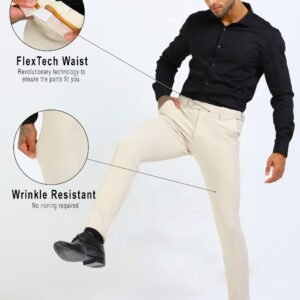 Mc Henry Men’s Wrinkle Free Slim Fit 4 Way Lycra Waist Expandable Formal/Casual Trousers (in, Numeric, 34, Regular, Beige)