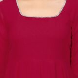KZA Women’s Georgette Hand Embroidered Flared Anarkali Suit for Women | Full Sleeves Flare Anarkali Dress for Woman | Ethnic Flared Anarkali Kurta for Women Pink