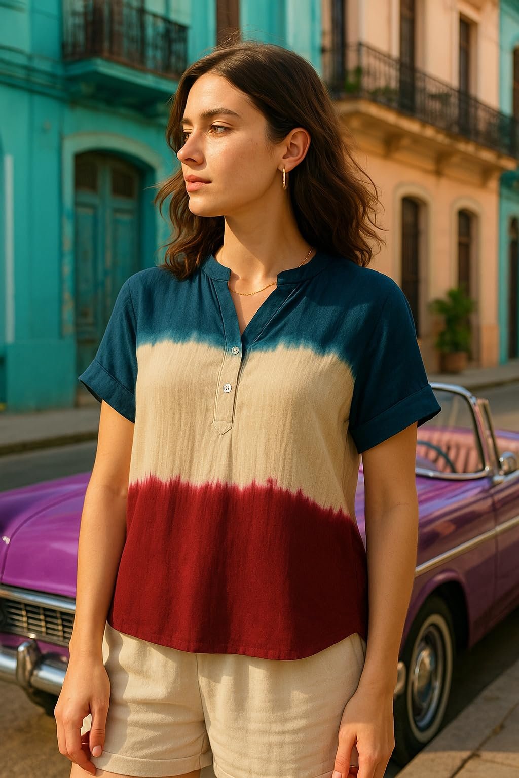 - Leave behind a trail by wearing this top from Maaesa . Tailored to sartorial perfection from premium quality rayon fabric, it assures a soft and soothing touch against the skin. The shirt collar adds to its appeal. Exuding short sleeves, it is sure to fetch you compliments from all.