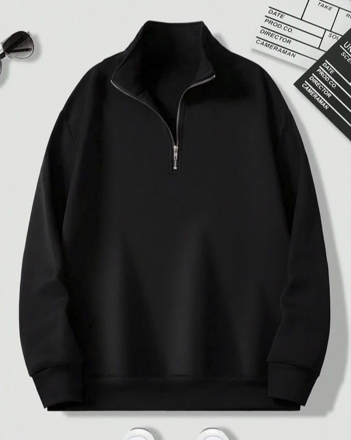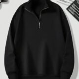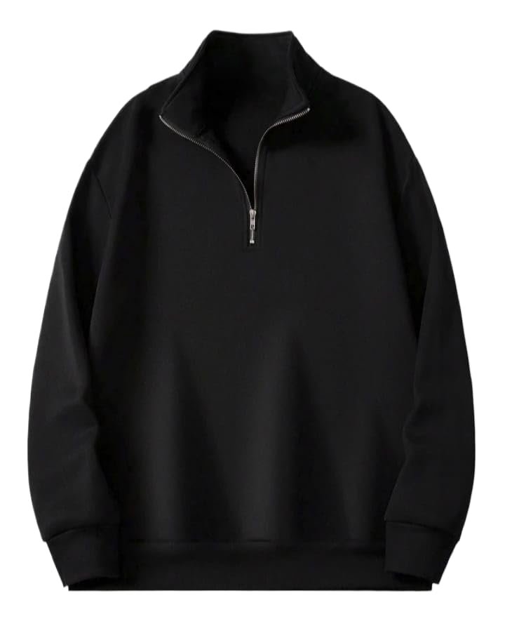 Mack Jonney Men’s Fleece Half-Zip Black Color High Neck Sweatshirt | Warm & Stylish Winter Wear -M4571