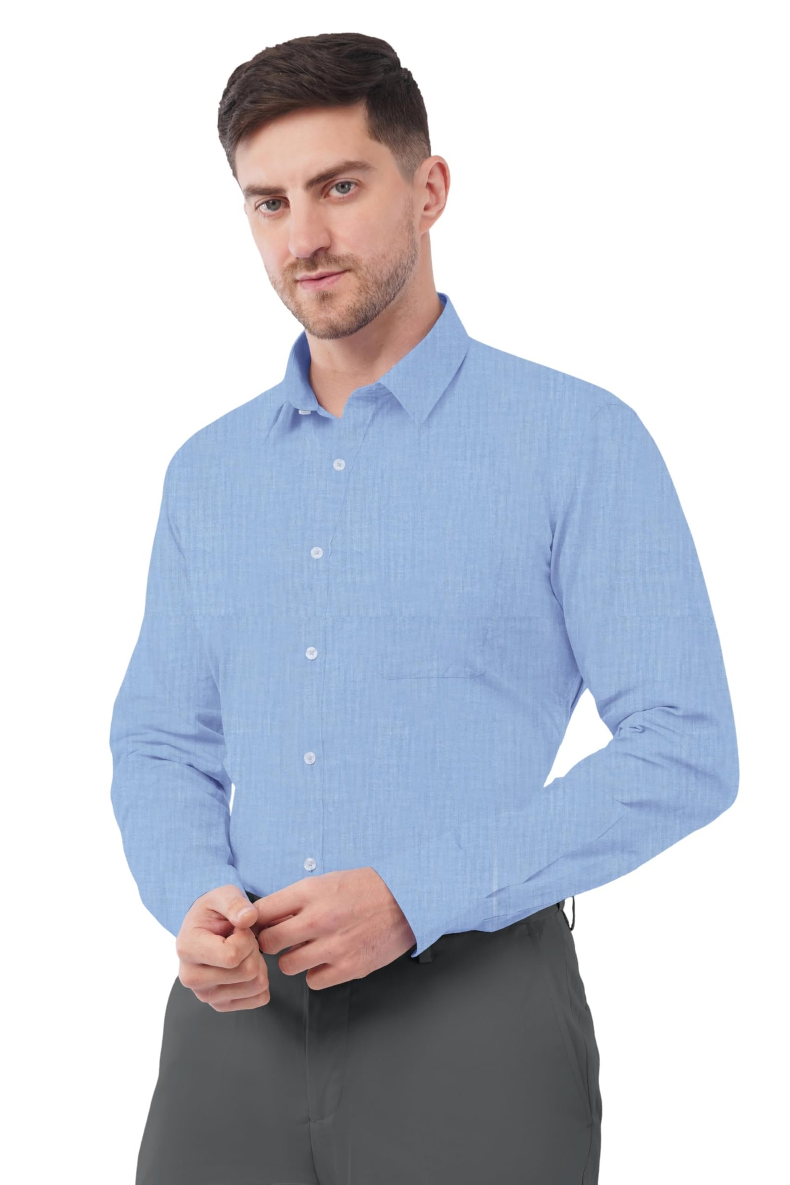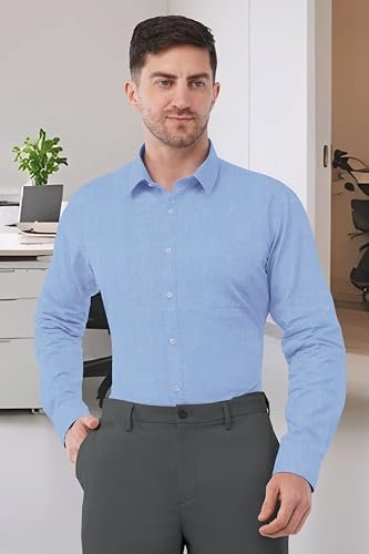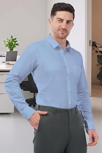 SaintX Men’s Formal Shirt with Pocket | Oxford Weave Cotton Rich Premium Fabric | Smart Fit | Full Sleeve | Everyday Summer Essential | Available in Plus Sizes (Style 29_ Sky Blue_ 38)