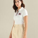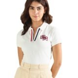 U.S. POLO ASSN. Women Cotton Regular Fit Striped Placket Pique Polo Shirt (UWSS24PTS011_White_S)