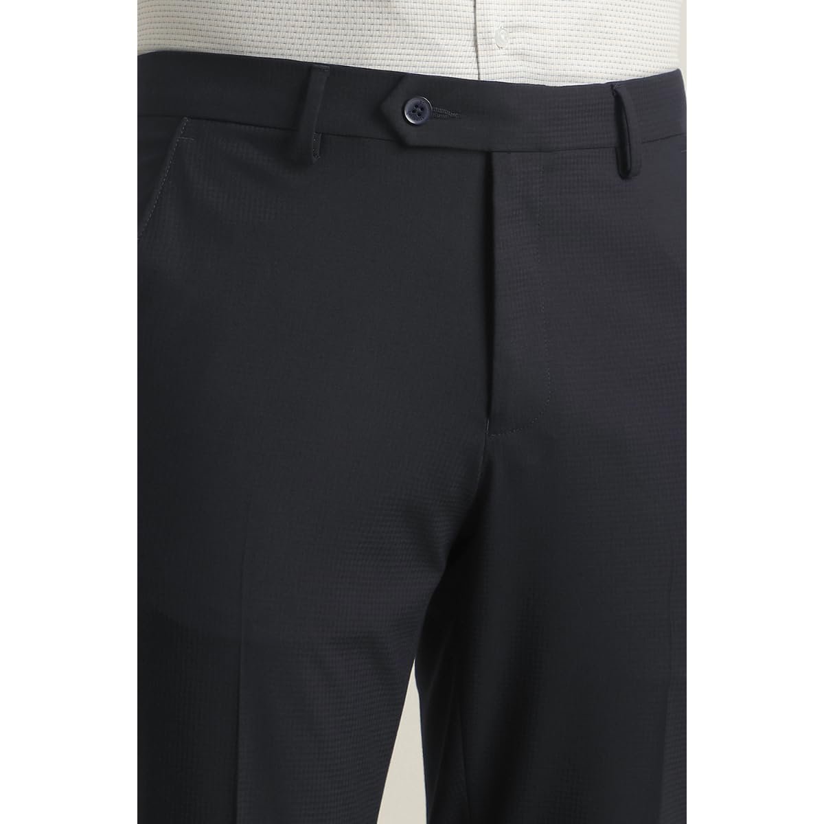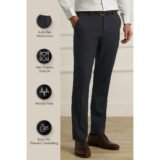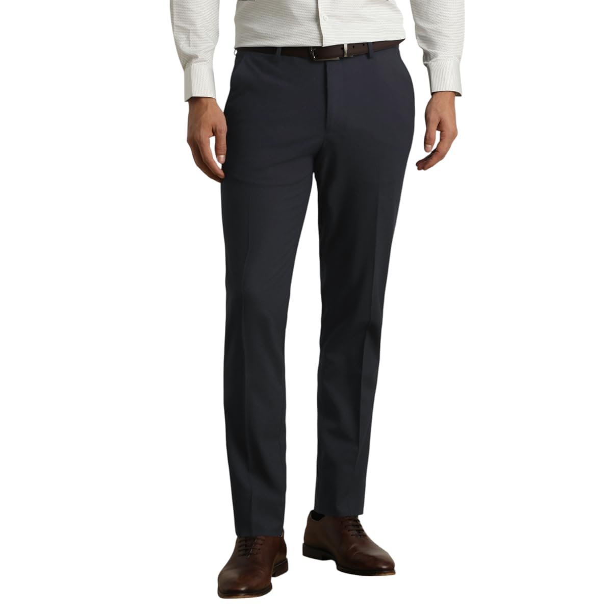 Elevate your formal attire with these Van Heusen trousers. Crafted from a lightweight blend of polyester and rayon, they offer a slim fit that ensures a polished look while providing all-day comfort. The solid navy color exudes sophistication, making them a versatile choice for any occasion. With a flat front design, these trousers seamlessly combine style and elegance, perfect for making a lasting impression. Embrace a refined wardrobe staple today.